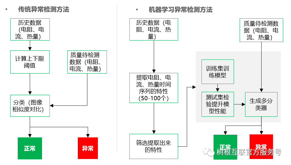 將正常與異常焊接數據形成可視化對比,可以發現正常與異常數據大部分有明顯邊界區分,因此可以通過電阻、電流等工作參數來做焊接異常檢測。但部分正常與異常與相互交織,很難通過傳統的參數閾值設置來進行區分,而機器學習算法能夠在相互交織的時間序列數據中剝離出差異,進而對正常和異常進行區分,因此需采用基于機器學習算法建模。