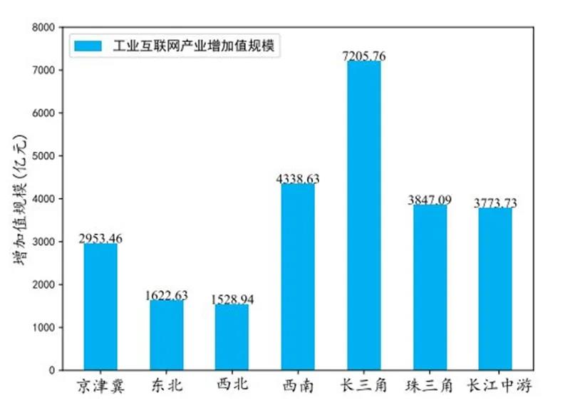▲2019 年我國重點區(qū)域的工業(yè)互聯(lián)網(wǎng)產(chǎn)業(yè)增加值規(guī)模