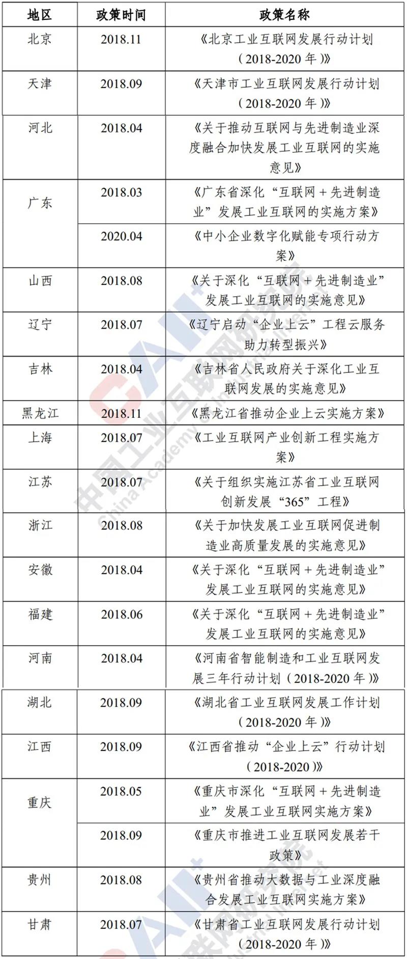 ▲部分省、自治區(qū)、直轄市工業(yè)互聯(lián)網(wǎng)相關(guān)政策