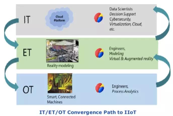 在制造業(yè)中由于智能設(shè)備的復(fù)雜度增加,相應(yīng)的軟件推動 IT 和 OT 緊密的集成,于是創(chuàng)造了在原有的知識上獲得新的洞察和觀察視角的機會。只是在 IIoT 的數(shù)字化數(shù)據(jù)環(huán)境中,將 ET 工程技術(shù)中那些為建立虛擬模型的技術(shù)納入 OT-IT 融合的進程和交換中,這才能真正發(fā)揮作用。或許過去 ET 已經(jīng)被隱含在 OT-IT 的融合中,但是它的作用被低估了。在現(xiàn)在和將來的工作環(huán)境必須改變這種觀念,原因在于建模工具已成為管理決策或技術(shù)決策中的基礎(chǔ)和必備的環(huán)節(jié)。
