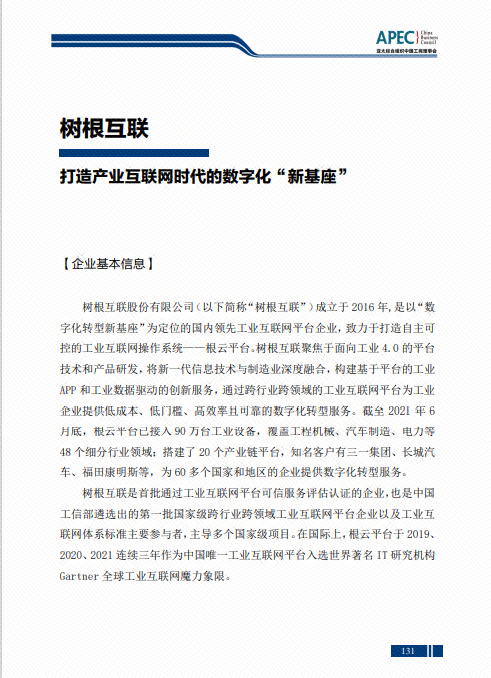 2021年是中國加入APEC30周年,這30年,是中國深化改革、擴大開放的30年,也是亞太經(jīng)濟合作不斷擴展的30年。樹根科技將專注打造工業(yè)互聯(lián)網(wǎng)操作系統(tǒng),為全球工業(yè)企業(yè)數(shù)字化轉(zhuǎn)型提供新基座,在千行百業(yè)打造更多最佳實踐。