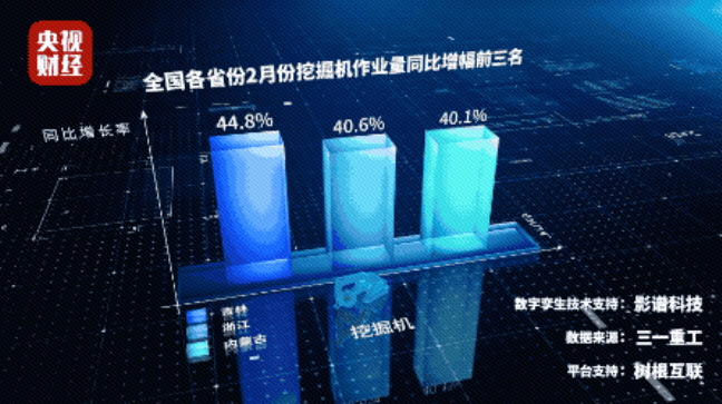 央視財經與三一重工、樹根科技聯合打造的“央視財經挖掘機指數”今天發布了最新相關數據。2月份,雖然受虎年春節假期影響,但是我國各類工程機械作業量穩步增長,多省份工程建設更是跑出了“虎年加速度”。