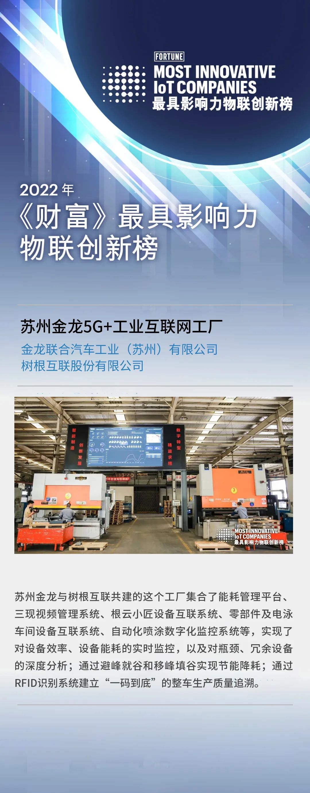 蘇州金龍攜手樹根科技全力打造的5G+工業互聯網工廠,率先打造試點示范智能車間,建成省、市級智能工廠。基于樹根科技旗下以工業互聯網操作系統為核心的根云平臺,蘇州金龍通過設備智能化改造,預計提升設備能效及作業率10%;通過能耗數據透明化,預計每年設備耗能成本降低8%;通過現場、現物、現實的“三現”管理降低管理成本,提升管理效率;透過數據互聯互通,打破“信息孤島”,數據看板輔助管理者進行決策,企業綜合管理效能顯著提升。