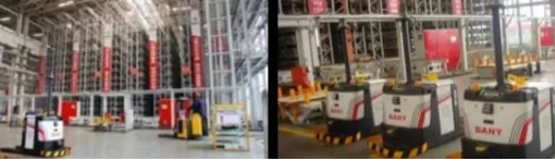 智能化立體倉庫和物流運輸系統實現泵車、拖泵、車載泵裝配線及部裝線所需物料的暫存、揀選、配盤功能,并與AGV配套實現工位物料自動配送至各個工位。