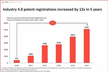 主要結論:與“工業4.0”相關的專利注冊總數在短短五年內激增了12倍。