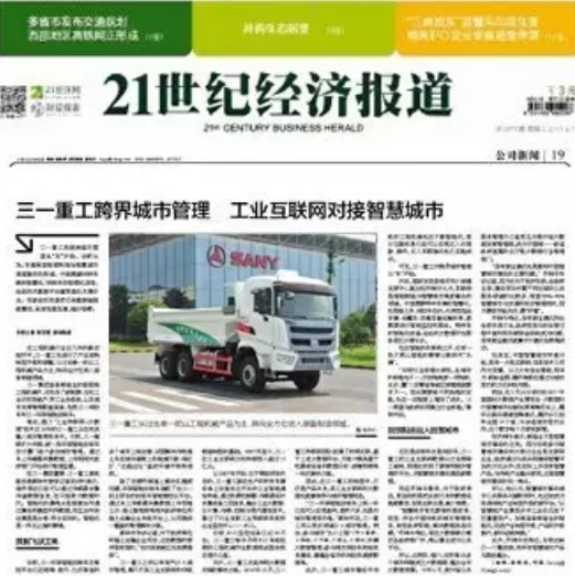 21世紀經濟報道:《三一重工跨界城市管理 工業互聯網對接智慧城市》
