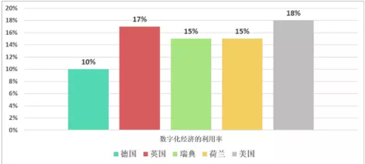 截至2017年上半年的統計結果,德國數字化產業對GDP貢獻僅為5.4個百分點,根據麥肯錫研究機構數據,德國對于數字化經濟的利用僅僅在總量的10%左右,低迷的數字化經濟增長會讓德國至2025年的八年中失去5000億歐元的產值。